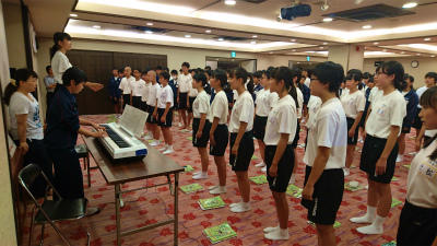 〇明日の合唱交流に向けて、大広間をお借りして合唱練習が始まりました。毎年行われている豊春中修学旅行の恒例行事です。歌うたびに心地よい響きになっていくのを感じます。同志社大学グリークラブの皆さんの心にも響く歌声を披露したいですね。(校長)