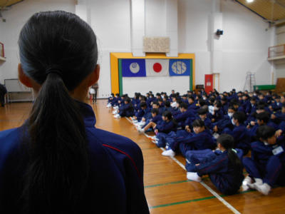雨にも負けず、行ってきます! 投稿日時 : 2018/05/09 豊春中 カテゴリ: 冷たい雨の中、体育館に集合しました。体育館で出発式。何だか寒いなぁ~。雨の中、バスへ移動です。マナーよく並んでます。いよいよ出発!楽しいバスレクをして過ごしました。さしまに到着。雨のためプレイハウスで開校式です。