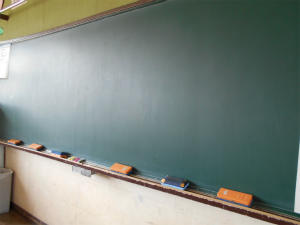 移動教室で生徒はいません。昼休み中に係が取り組んだのでしょう。黒板がピカピカです。こんなきれいな黒板で授業を受けられたら、気持ちがいいだろうなぁとしみじみ感じました。