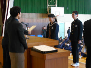 3月13日(月)「卒業式予行」において、生徒表彰が行われました。