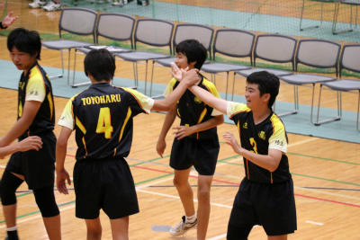 〇庄和体育館において、学校総合体育大会男子バレーボールの埼葛北部地区予選会が行われています。この大会には、春日部市、杉戸町、蓮田市から7校が出場し、1日目のきょうはリーグ戦が行われています。豊春中の1回戦の相手は大沼中。昨日顧問の先生から聞いていたのは、かなり激しい戦いになるとのことでした。会場に着き、保護者の方から伺ったのは、このところの大沼中は成長著しく、接戦が予想されるとのことでした。試合が始まり、1セット目は接戦をものにし勝利。2セット目は、あれよあれよという間に点を取られ、追い上げたものの敗北。3セット目は出足快調で、その勢いのまま勝利。結局、セットカウント2-1で試合に勝ちました。