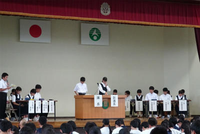 〇本日の午後は「生徒総会」が行われました。平成29年度の活動報告、そして決算報告、平成30年度の活動方針、そして予算案など、スムーズに進行し、本年度の生徒総会も無事に終了しました。この総会までの生徒会本部を中心とした準備がしっかりできていたからのことだと思います。お疲れ様でした。この総会で確認されたことを忘れず、よりよい生徒会活動が行われることを期待しています。(校長)