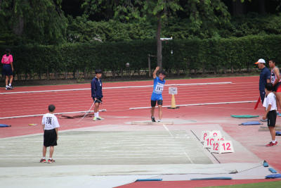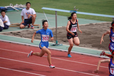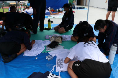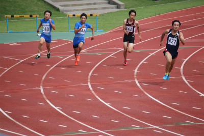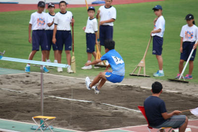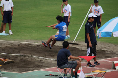 〇第1日とは打って変わって、晴れ渡った会場での競技となりました。今日は、決勝種目とフィールド競技が中心です。最初の競技は、女子200m決勝。予選3位通過ながら、最初の競技、そして、緊張感からか、予選の記録を上回ることはできませんでした。でも、一生懸命走る姿は、とてもさわやかでした。男子200決勝では、隣のレーンでチームメイトと競い合うことになりました。ライバルが身近にいることも刺激になっていいですね。走幅跳や走高跳、そして砲丸投など、それぞれの種目で自己ベストを更新するなど、よく頑張っていました。そんな中、スタンド席のテントの中では部活Tシャツにサインを書き合っていました。3年生最後の夏って感じですかね。また、期末テストに備えて、問題集もあちこちに置かれ、競技をしながらもいろいろなことにがんばっている生徒たちの様子がよくわかりました。今しかできないことに全力でトライしよう!(校長)