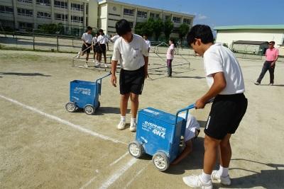 〇5時間目、いよいよ研究授業です。用具の設置、準備運動と元気な声を出して活動が始まりました。それぞれの生徒は個人の目標を立て、サーキット運動が始まりました。大勢の先生方に見守られてやる気が出たのか、すごい勢いで走り抜けていきます。個人差があるのでタイムには違いがありますが、どの生徒もベストタイムを出しました。辛くて苦しそうな表情を見せていた生徒も、自分の意志で走り続けました。生徒をサポートしながら一緒に走る先生も汗びっしょりです。そんな姿を見ていると、目頭が熱くなってきました。入学した当時の姿と重なって、こんなに成長したんだなぁと改めて感じました。がんばる生徒、共に走る先生、一生懸命って、やっぱりいいですね。感動的なドキュメンタリー映画を見ているようでした。授業が終わり、生徒たちの顔には、やりきったというような満足感が浮かんでいました。(校長)