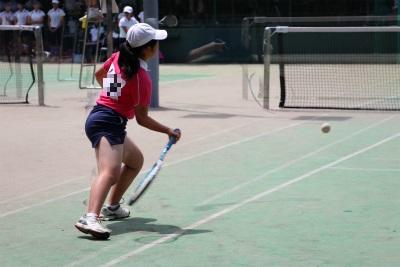 〇女子バレーの隣の会場では、女子ソフトテニスの団体戦が行われていました。1回戦の相手は東中、私が到着したときは最後のペアの試合中でした。大きく変化するサーブなどで相手を翻弄したものの、残念ながら敗退しました。気持ちをスッキリ入れ替えて、次の目標に照準を合わせていきましょう。
