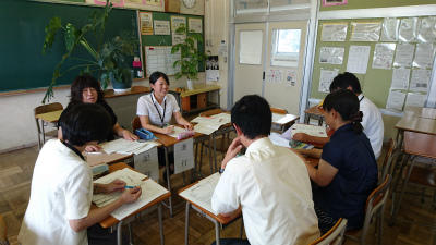 集会の後、掃除、学活という流れの中、2年生は山村民泊の準備で