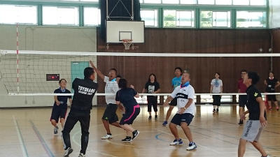 〇研修会終了後、体育館において親睦を兼ねたソフトバレーボール大会が行われました。中学校では行われない競技なので、小学校の先生方の張り切りようが強く伝わってきました。2ゲームを行っただけでしたが、先生方同士の距離が大変縮まったように感じました。一つのことにみんなで取り組むっていいものですね。(校長)
