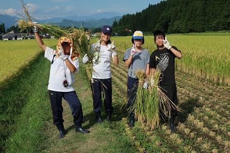 稲の収穫もチャレンジ。(この後せっかくの稲が…)