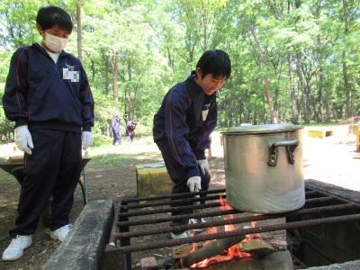 午前中のメインはカレー作り。協力して頑張りました。(教頭)