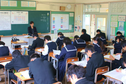 緊張の色がまだ見える教育実習生の授業。ガンバレ!