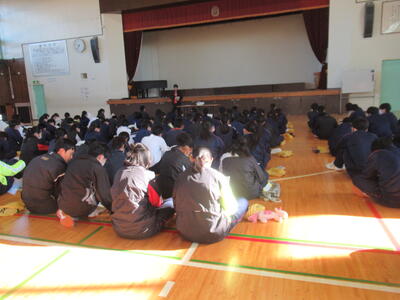 厳しい寒さの中、厳粛な雰囲気で終業式を行いました。