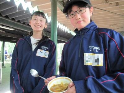 午前中のメインはカレー作り。協力して頑張りました。(教頭)