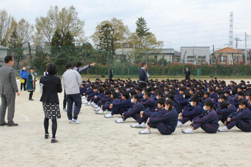 先生の話をしっかりとした態度で聞いてます。