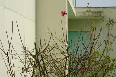 ○新入生の教室は、準備登校までひっそりとして新しい生活者の訪れを待っているかのよう見えます。部活動の様子を見ようと体育館へ向かうと、1本の木にひとつだけ赤い花が咲いていました。春の暖かさに誘われて、仲間たちより一足先に顔を出してしまったのでしょうか。でも大丈夫。体育館には、真っ赤なバスケ部の花が咲き誇っていました。