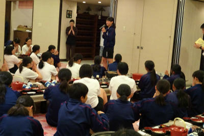 〇朝食は大広間でそろっていただきます。女子の集合が速かったですね。中には座るなりうずくまる生徒もいました。話を聞いていると、昨夜の就寝時間が遅かったようです。次の自分の行動を考えると、時間の過ごし方も変わってくるでしょうね。