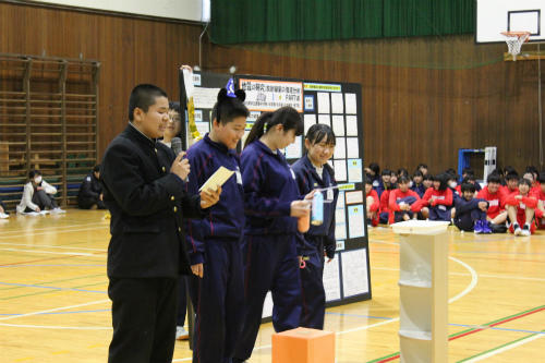 4月10日(水)の第5・6校時を使って、「生徒会・部活動オリエンテーション」を体育館で実施しました。あいにく雨で気温も上がらずに、皆さんには寒い思いをさせてしまいましたが、さすが2・3年生は発表も堂々とでき、しかもユーモアもありパフォーマンスでした。1年生の皆さんもしっかりと話を聞いていました。自分の力が発揮できる委員会や部活動に入部してください。