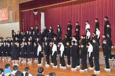 豊野中学校は、昭和52年4月1日に開校し、今年で47年目を迎える歴史と伝統のある学校です。令和5年度は、生徒数456名、16学級でスタートしました。本校は、元気ではつらつとした生徒の多い、部活動が盛んな活躍が光る学校です。