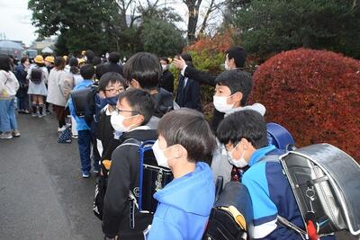 また各地点で先生方が安全指導も兼ねてあいさつ運動を行っています。