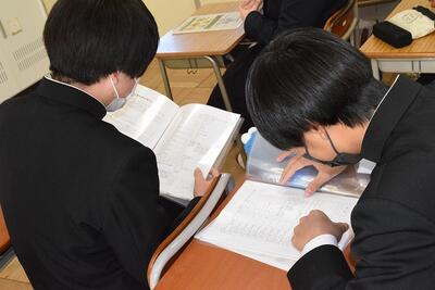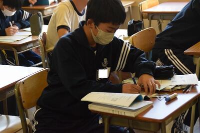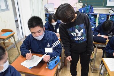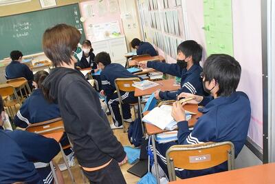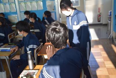 普段より少人数でじっくりと先生に質問し教わる姿、