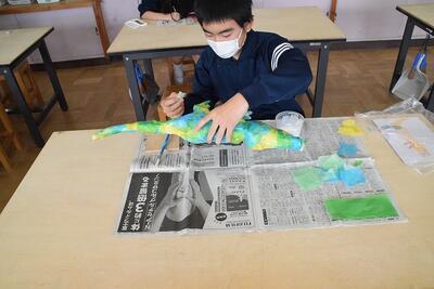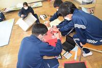 2年生家庭科では調理実習でイワシのかば焼きです。