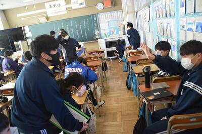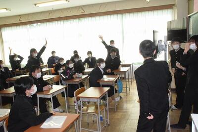新聞等でお世話になった先生が豊野中を離れるのを知ってか、