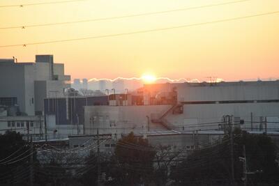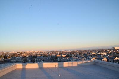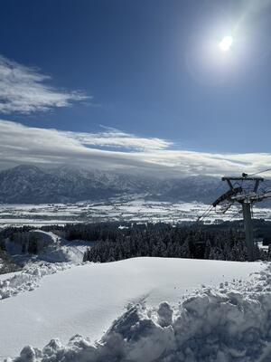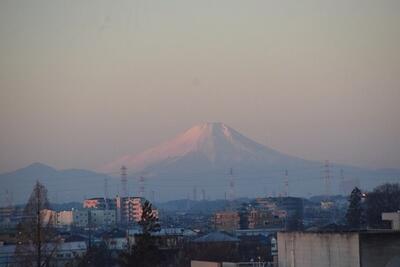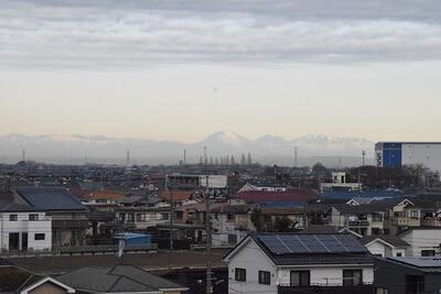 体育館側の廊下窓からは北西の方向にはきれいに山並みが見えます。