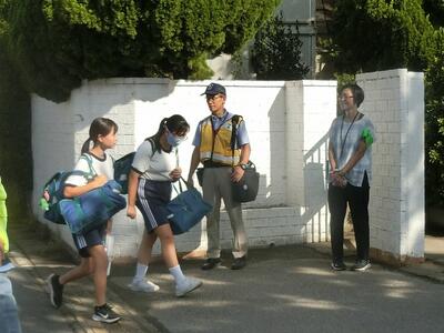 一昨日から本日までの3日間、正門前で朝のあいさつ運動が行われました。昨日、本日と、朝から満面の日差しが差す大変暑い中となりましたが、春日部警察署と青少年補導員の皆さま、ご協力をありがとうございました。