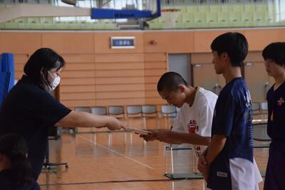 「お願いしまーす!」と大きな声であいさつをして体育館に入ってくる生徒が何人もいました。