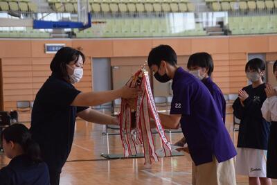 学校総合体育大会をはじめ、多くの部活動や硬筆展などの表彰を行いました。