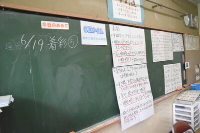 黒板には連絡や担任の思いのこもったメッセージが書かれています。