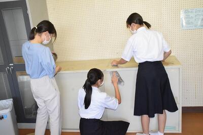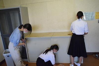 放送委員 ポスターつくりと放送室そうじと模様替えと、精力的に活動しています