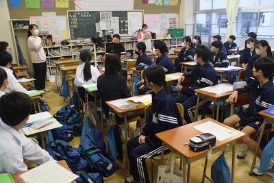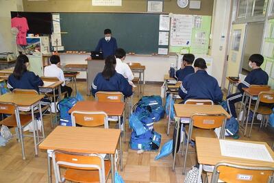 1年3組数学の授業(少人数授業のため半数は他教室にいます)