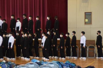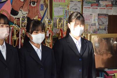 マーチングバンド全国大会に出場した吹奏楽部の3年生が校長室へあいさつに来てくれました。