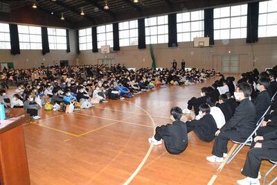 令和6年度の県学力学習状況調査のCBT(Computer Based Testing:コンピューターを使ったテストの方式のこと)化に向けて、学校の通信環境を確認するために全校生徒でタブレットを使い確認のためのテストに取組みました。