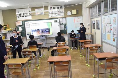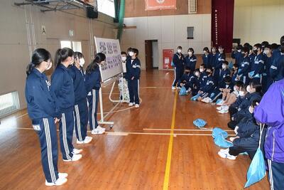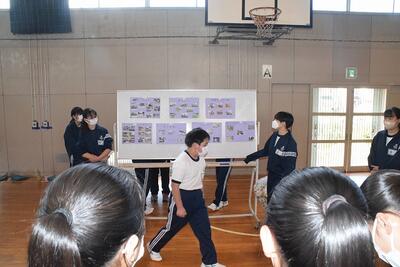 朝学活の時間を活用して、3年生の国語の授業に1年生が協力した活動を行っていました。