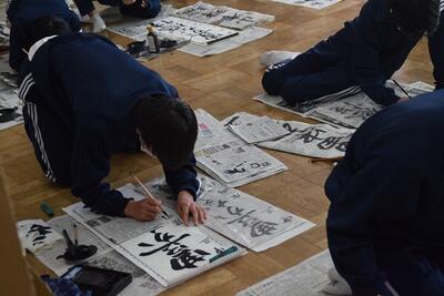 12/12 今日の豊野中~朝の様子、保健委員会つめ点検、3年生書道
