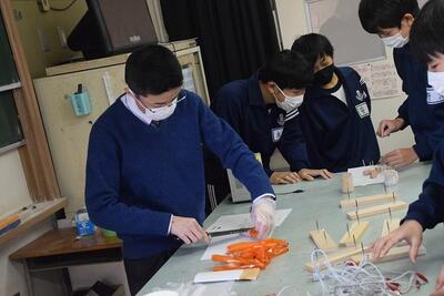12/14水 今日の豊野中~3年生家庭科おもちゃつくり、3年生理科地球儀、2年生理科実験