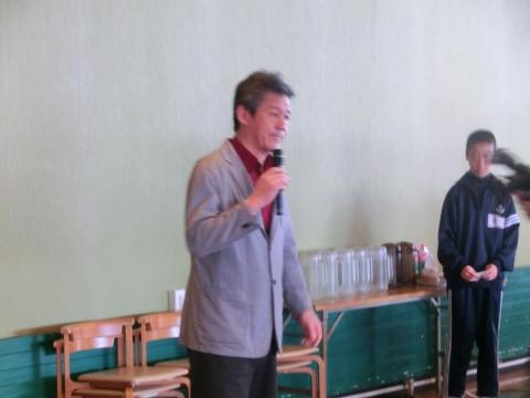 スクールサポーターさんのインターネットトラブルについてのお話のあと、ハートフルクラブ落合弘キャプテンによる講話がありました。その中で、一生懸命を楽しくやること、思いやりをもって取り組むことなど、技術を伸ばすためには心が大切であるとの講話をいただきました。その後、コーチによる実技指導とコーチ・教員警察の方チーム対3年・2年・1年それぞれのチームでゲームを行いました。