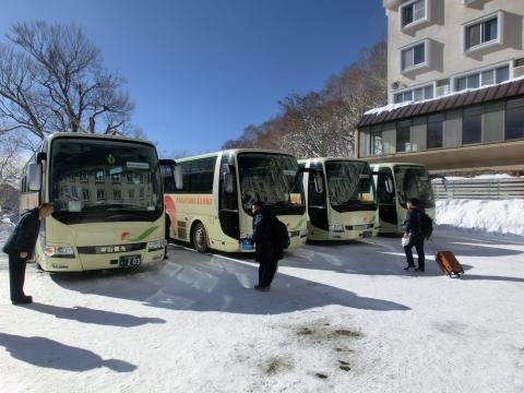 高天ケ原マンモススキー場へ向けバス4台で朝7:00に出発しました。元気に
