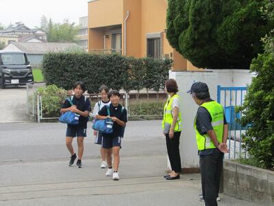 一昨日から本日までの3日間、正門前で朝のあいさつ運動が行われました。昨日、本日と、朝から満面の日差しが差す大変暑い中となりましたが、春日部警察署と青少年補導員の皆さま、ご協力をありがとうございました。