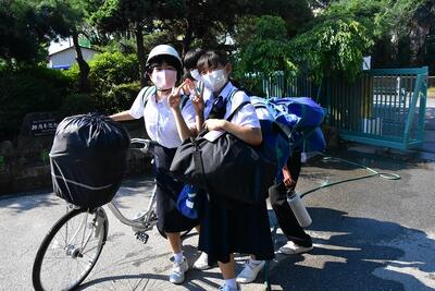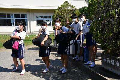 7月になりました!真夏の真っ盛り、今日も危険な暑さです。いよいよ明日から修学旅行です。3年生は、大きな荷物を抱えてうれしそうな表情で登校していました。その、大きな荷物は、トラックの運転手さんと校長先生!で、丁寧に積み込み、京都へ向けて出発しました。明日からよろしくお願いいたします。