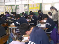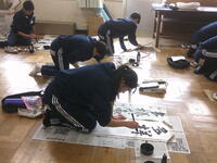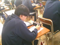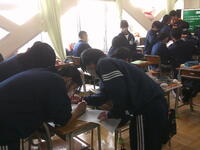 さて、本日も各授業で前向きに取り組む様子が見られました。特に3年生の書きぞめでは、一言も話すことなく集中して書く様子が見られました。
