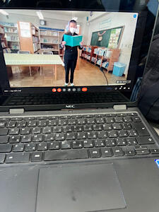2年生はバス内からリモートで始業式に参加しました。