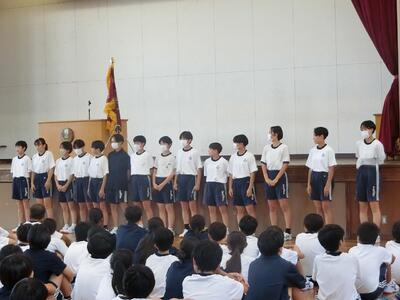 本日の表彰→【市内読書感想文コンクール・身体障害者福祉のための第67回埼玉県児童生徒美術展覧会・春日部市中学校駅伝競走大会・第30回吉川市民体育祭卓球大会・税についての作文・埼玉県中学校新人体育大会兼県民総合スポーツ大会バレーボール男子・バスケットボール女子(ベスト5に2名選出)・第79回国民スポーツ大会バスケットボール競技種別:少年女子埼玉県代表】