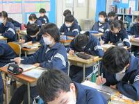 今週で1月が終わり来週から2月が始まります。3年生は、授業の中で入試対策や復習の時間が多くあります。1・2年生は、基礎基本雄の定着と考える力の育成を図り、様々な授業スタイルで取り組んでいます。メリハリのある授業がほとんどで、学校で学習した内容を必ずその日のうちに復習することが、学力の定着の一歩です。3年生は、2月9・10日と「期末テスト」、1・2年生は2月9日に「実力テスト」があります。学習する習慣を身に付け頑張っていきましょう。