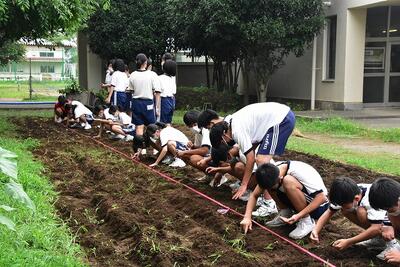 「皆で植えよう未来の花」コスモスの種まきボランティアに参加してくれた生徒のみなさん