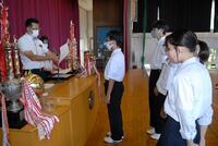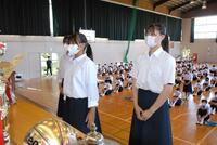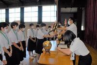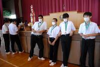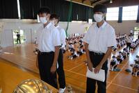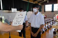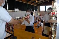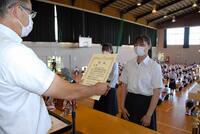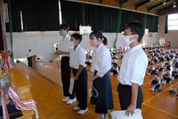 始業式では、校長先生のお話、各学年代表生徒の言葉に続き、さまざまな輝かしい活躍をした生徒たちに対し、表彰が行われました。