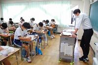 高温多湿で過ごしにくい一日 午後からは雨となりました。校庭ではソフトボールの授業が行われていました。6時間目の3年生の教室では進路学習が行われていました。それぞれの進路選択へ向け、生徒も先生も真剣な眼差しでした。