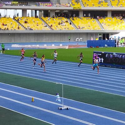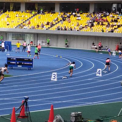 女子4✕100mR予選が行われました。自己ベストを更新しなければ決勝進出できないような高いレベルの中、残念ながら2組5着となり予選敗退となりました。