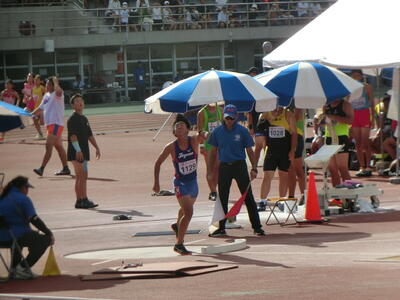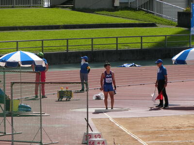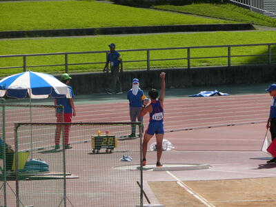 本日、第1日目の男子砲丸投に豊野中の選手が出場しました!夕方でも30度を超える環境の中、もっている力を出しきれず悔しい記録、順位となってしまいました。